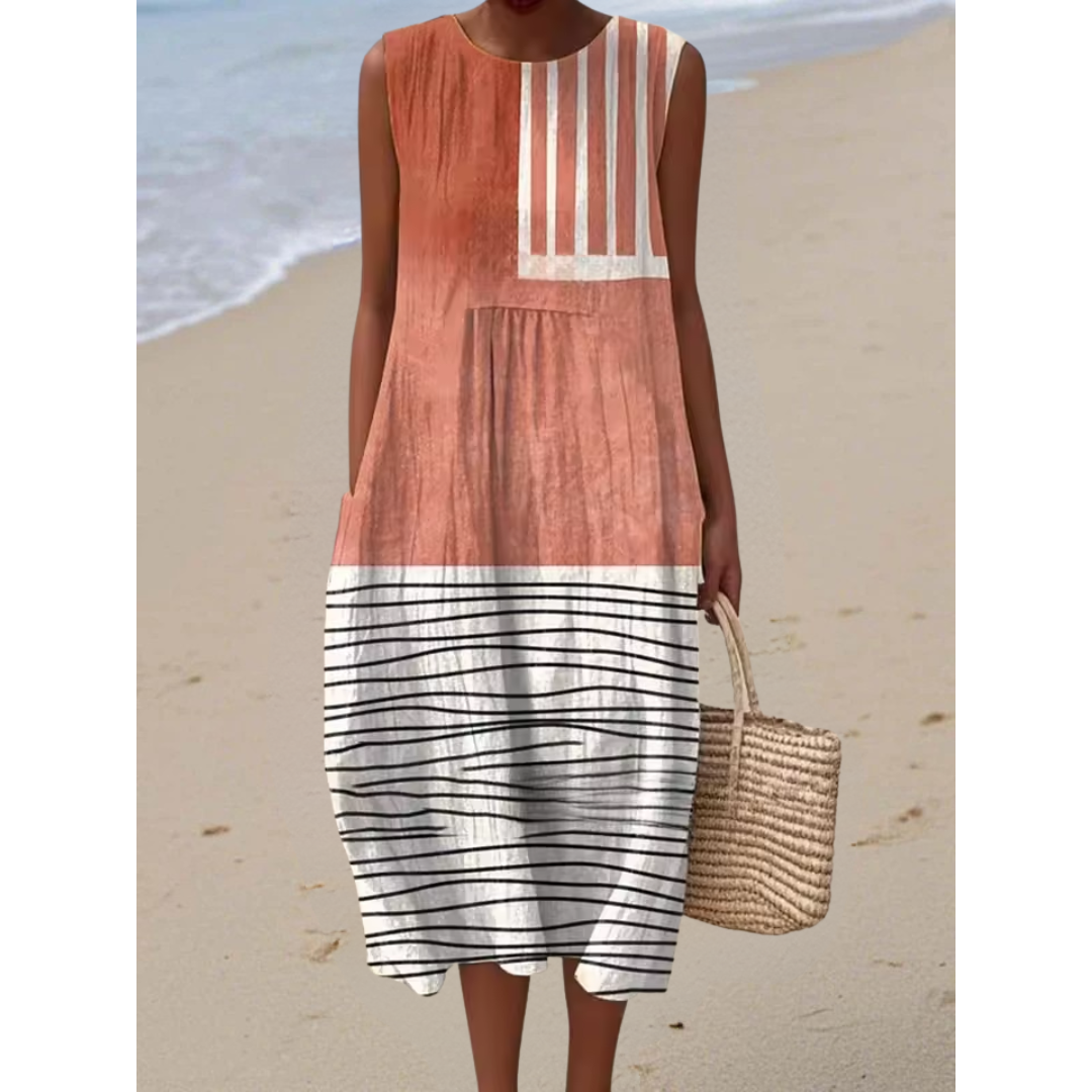 Soléane | Robe Midi Imprimée Rayures Contrastées